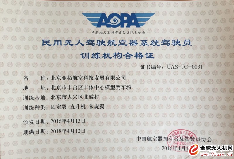 證書(shū)介紹 亞拓?zé)o人機(jī)培訓(xùn)學(xué)院,民用無(wú)人機(jī)駕駛航空器系統(tǒng)駕駛員訓(xùn)練機(jī)構(gòu)合格證