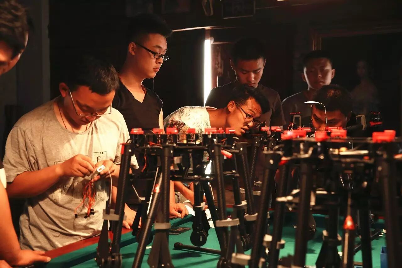(無(wú)人機(jī),發(fā)給飛手們使用,圖為飛手們熟悉新無(wú)人機(jī)架構(gòu)及性能。)